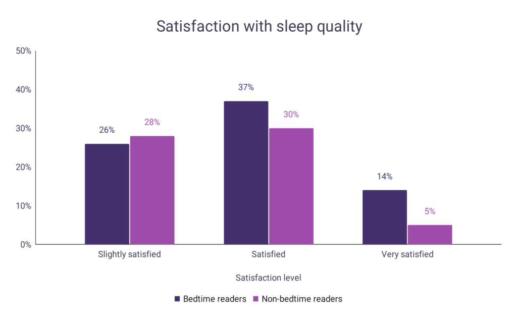 - According to the survey, bedtime readers show greater levels of satisfaction with their sleep quality when compared to non-bedtime readers.